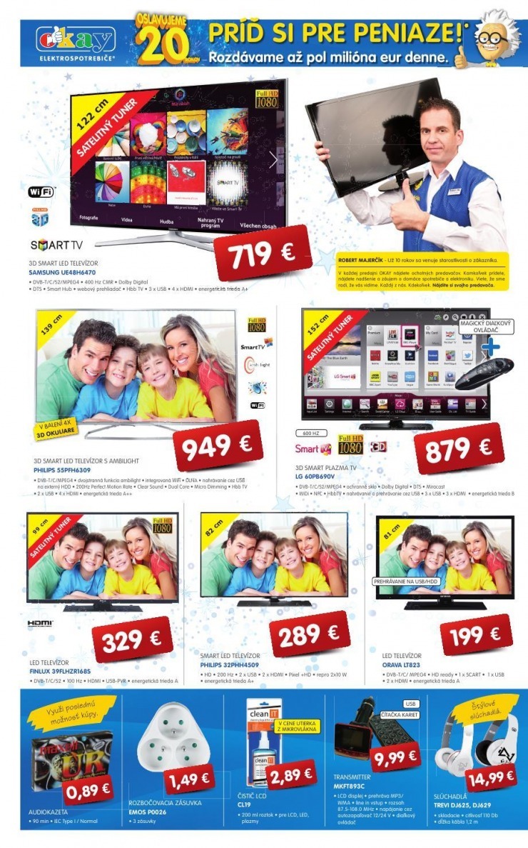 Kromě akčního letáku Okay si zde můžete prohlédnout i letáky dalších prodejců elektra: Alza.sk, Datart, Electroworld, Euronics, Expert Elektro, NAY Elektrodom, playklub, ProELEKTRO, SHARK Computers