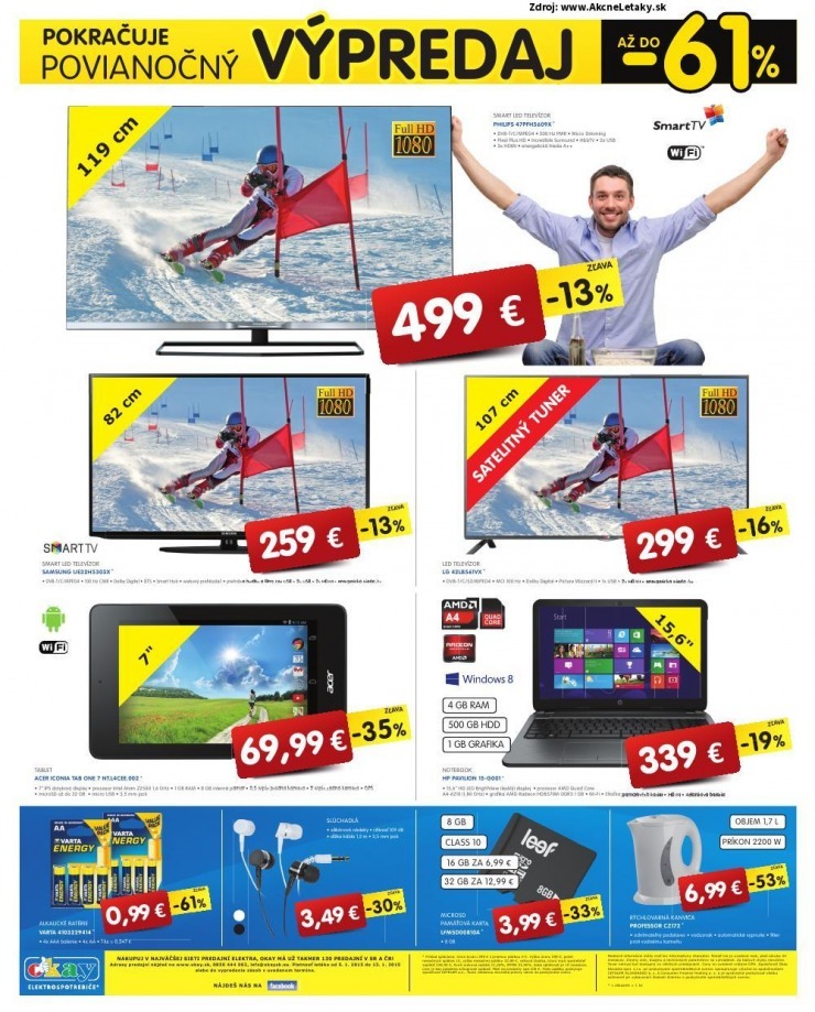 Kromě akčního letáku Okay si zde můžete prohlédnout i letáky dalších prodejců elektra: Alza.sk, Datart, Electroworld, Euronics, Expert Elektro, NAY Elektrodom, playklub, ProELEKTRO, SHARK Computers
